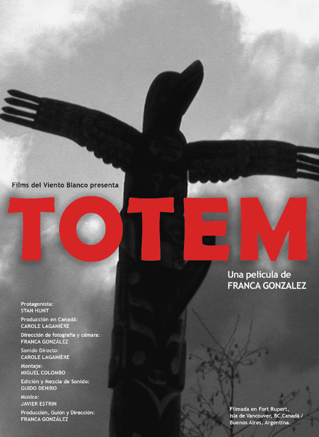 Entre 1964 y 2008, un tótem tallado por Henry y Tony Hunt, maestros escultores de la nación indígena Kwakiutl en Canadá, se erigió en una plaza que homenajea a ese país en el barrio porteño de Retiro, hasta que por decisión del gobierno de la Ciudad de Buenos Aires fue retirado del lugar. Franca González, directora de Al fin del mundo, viaja al norte de la isla de Vancouver para grabar el proceso creativo y artesanal del nuevo palo totémico que lo reemplazará.