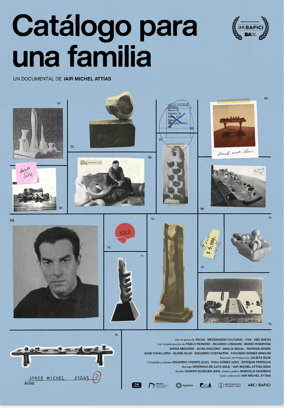En Catálogo para una familia, el cineasta inicia una búsqueda por los primeros pasos de Michel en la escultura, indaga en la relación de su abuelo con la pintora Josefina Robirosa y rastrea el destino de sus obras. Con una edición elegante, apoyada en buena medida por archivos inéditos y buenas entrevistas, la película traza una cronología de la carrera de Michel al tiempo que problematiza sobre su legado.