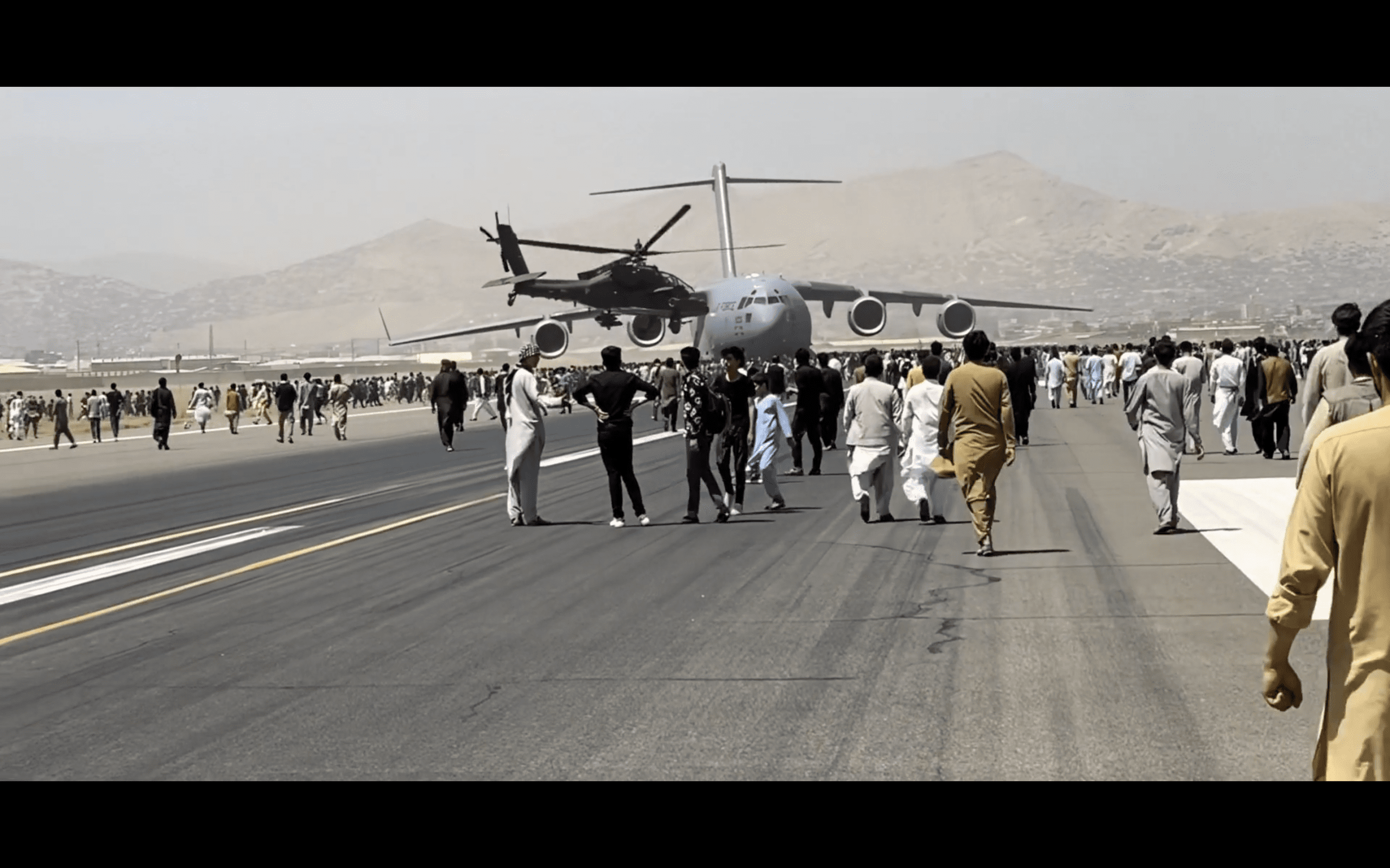 Roberts consiguió grabaciones caseras desde la perspectiva del exterior del principal aeropuerto afgano (con las familias huyendo del país frente al retorno del régimen talibán) y del interior (con la desesperada logística de los soldados tratando de contener a las masas). En lo personal, entre las cosas que había olvidado por completo, probablemente por la escasa información que circuló sobre lo que ocurría en Kabul, está el ataque suicida de Estado Islámico -once días después del inicio de la evacuación- que sembró el pánico en la población, pero no impidió que más personas llegaran al lugar para escapar.