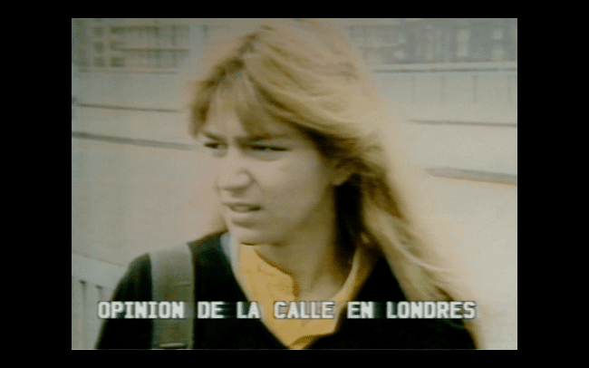El archivo: «Bajé material de Radio y Televisión Argentina (RTA) / Archivo Prisma y también del Archivo General de la Nación. Yo creo que debe haber un 70% de RTA y un 30% de AGN. A veces curiosamente estaban repetidas algunas cosas. Por ejemplo, había una cámara y existía una versión de RTA con la televisión pública de ese momento con una voz en off. Ese mismo material la AGN lo había usado para el exterior y entonces tenían la misma imagen con distinto sonido. Después está la parte inglesa, o sea el final de la película, que es como una ficción total, una escena que filmamos nosotros. Esa manifestación existe, pero el off lo escribimos nosotros».