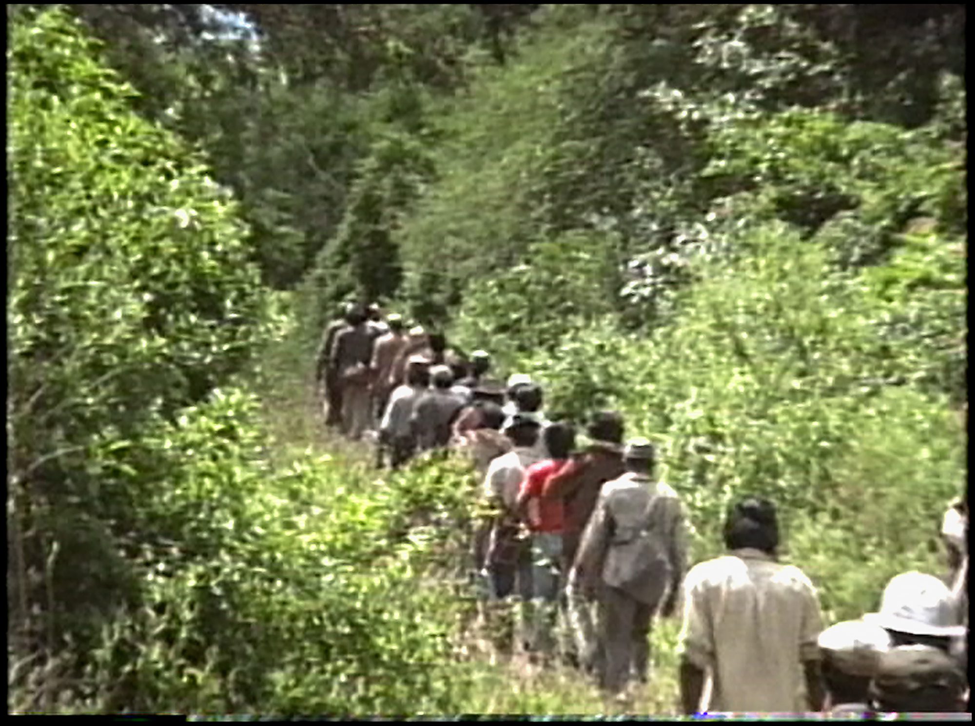 El origen: «Conocí la historia de la comunidad cuando era estudiante de cine y me enviaron unos VHS con algunas de las imágenes con las que ahora se armó Senda india. En esta pulsión por contar y dar a conocer el caso, Miguel Ángel Lorenzo y los miembros de la la comunidad no solo hacían estos registros sino que intentaban que eso llegara a distintos lugares. Guardé los VHS durante mucho tiempo y siempre fueron para mí un material de consulta que, si bien no se veía en alta resolución, se escuchaba perfecto. Había algo muy fascinante en ese recorrido por el monte. Cuando estaba trabajando en el guión de Husek (2021) conocí más sobre el entorno de los materiales, sobre el juicio y sobre la participación política tan especial que tuvo la comunidad. Me enteré que el Museo del Cine tenía una muy buena videocasetera y pudimos digitalizar los materiales. Logramos estabilizar las imágenes y a partir de ahí propuse a la comunidad la posibilidad de hacer una película».